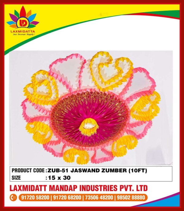Give your event a floral charm with the Jaswand Zumber, inspired by the vibrant hues of the hibiscus flower. Designed in striking pink and yellow shades with heart-shaped detailing, this 10-foot decorative zumber is ideal for weddings, receptions, and cultural programs.