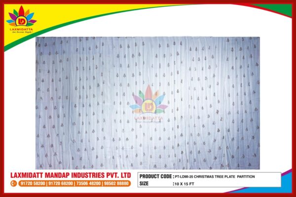 Add a festive touch to your events with this elegant Christmas Tree Plate Partition, featuring delicate tree patterns on a soft white backdrop. Ideal for stage decoration, partitions, and special occasions. Lightweight, classy, and easy to install.
