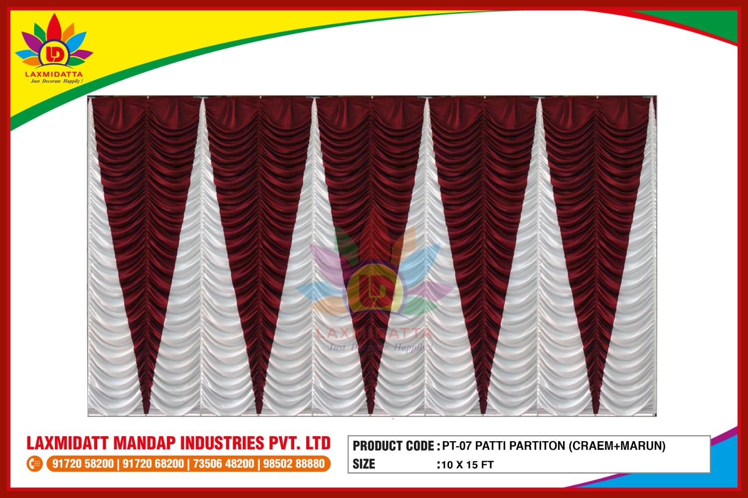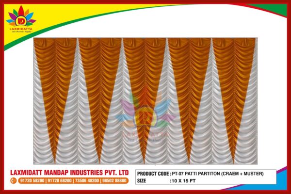 Bring a vibrant touch to your event décor with our PT-07 Patti Partition in an eye-catching cream and mustard color combination. Made with premium satin fabric and beautifully pleated design, this 10 x 15 ft backdrop is ideal for weddings, receptions, and stage settings. Durable, elegant, and easy to set up.