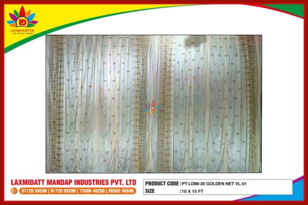 Elegant and royal, this Golden Net Partition is designed with intricate embroidery work, perfect for weddings, engagements, and traditional ceremonies. The rich golden tone enhances the backdrop with a touch of luxury and sophistication.
